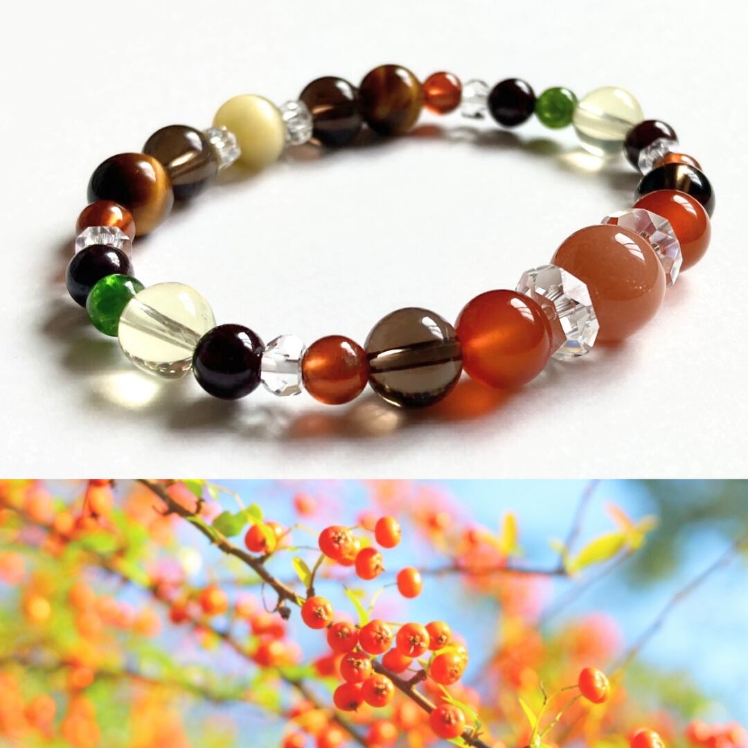秋の夜空 紅葉モチーフ 秋色アクセサリー 天然石ブレスレット