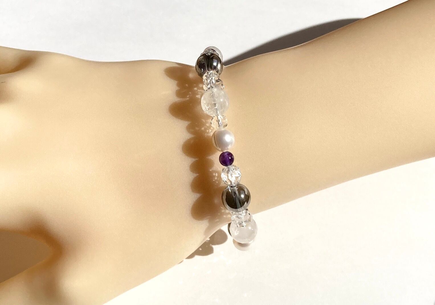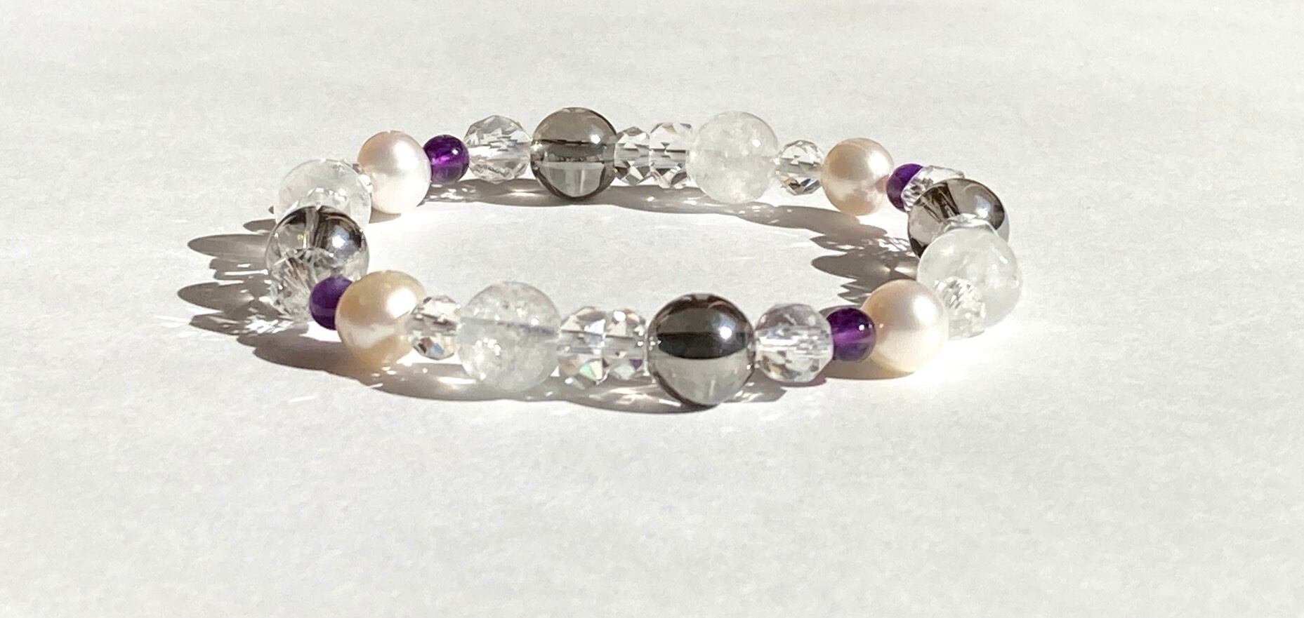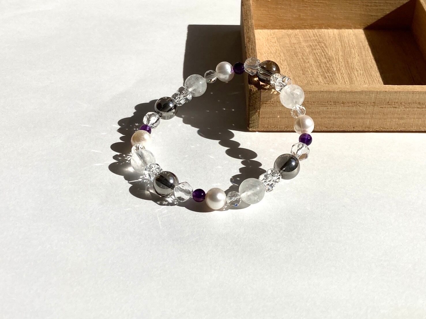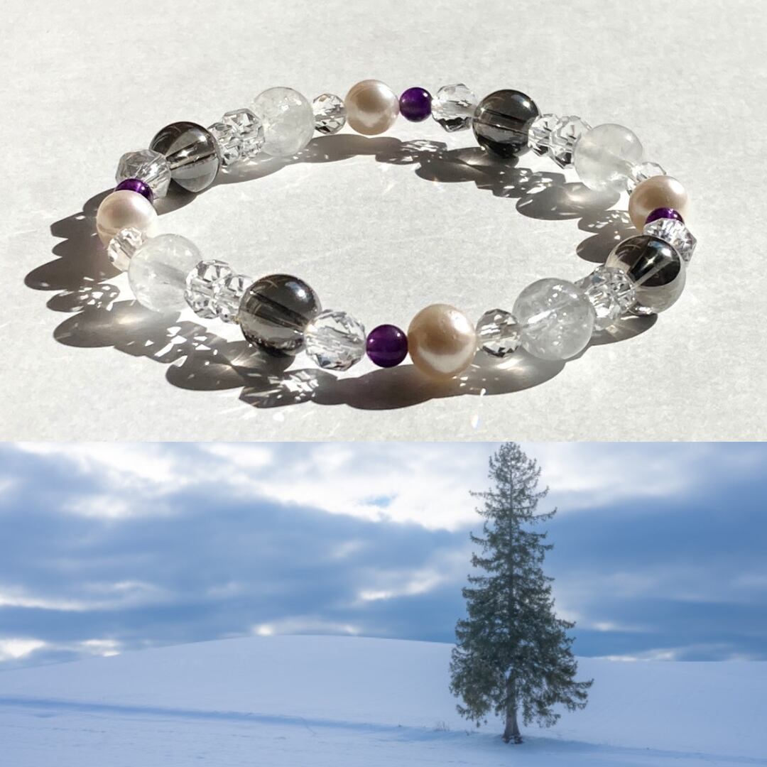 【静寂に差す銀光◆心のざわつきを鎮める白銀の世界】冬用 冬ブレス 雪景色 粉雪 ダイヤモンドダスト 天然石アクセサリー