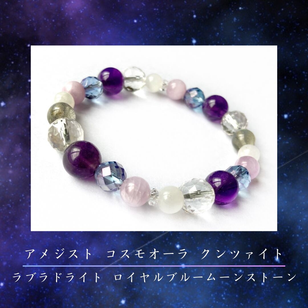 【天を覆う星海◆宇宙からの囁き〜迷いを感じるときに】アメジスト クンツァイト ムーンストーン 天然石ブレスレット